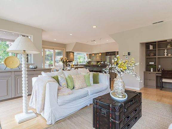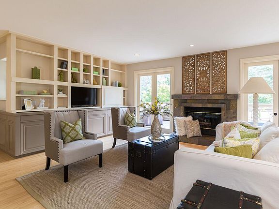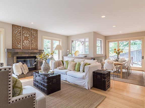 Explore this Beautiful Sanctuary in desirable Emerald Hills w/ over 3600 square ft. on a 10k lot. Enter into the open floor plan w/ bamboo flooring, LR w/ fireplace & large dining area w/ French Doors that open onto the Slate Patio, & private hot tub. The landscape is complete with flowers & fruit trees. Continue into the updated kitchen w/ SS appliances, center island, & additional FR w/ built-in bookshelves. Large formal DR currently fitted w/ a pool table & adjoining bar. 3 spacious bdrms all on same level w/ outdoor access. Master suite w/ 2 walk in closets, fireplace, vaulted ceilings, & spa like bthrm with steam shower and soak in tub. Fourth bdrm can be used as a guest suite on lower lvl w/ full bathroom. Features: double pane windows, solar panels, laundry rm w/ stack-able washer/dryer, recessed lighting, AC/central heat, & 2 car grg. Sought-after loc. in quiet, woodsy retreat-like neighborhood, minutes to Emerald Lake, close to (I-280/101), downtown Redwood City, SV & SF.