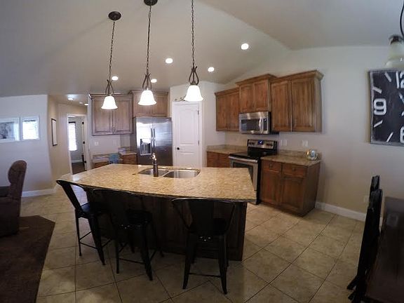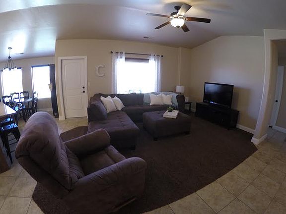 Exquisite property located in Dixie Springs! Features vaulted ceilings, over-sized 3 car garage, granite counter tops, beautifully landscaped, block wall fence, stained driveway, huge master bedroom closet, double sinks, out door fire pit & more! Close to Sand Hollow reservoir & golf course.