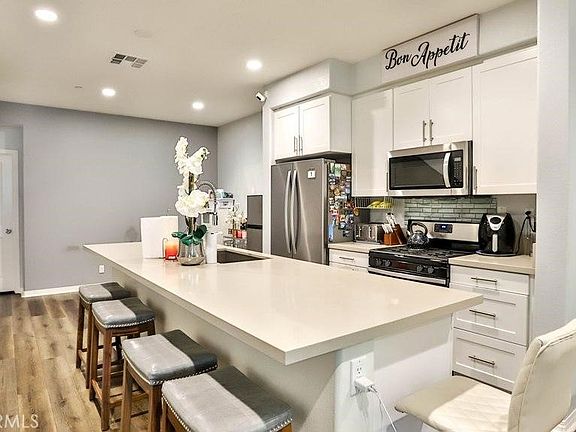 Gorgeous newer gated Community of Tapestry Walk. Modern Resort Style Living at its Finest! 3 bedroom, 3 bathroom, 1535 sqft with 2 car attached upgraded epoxy flooring tandem garage on the ground floor! Tons of Natural light make this the perfect model! All rooms are master bedroom with attached full bath! The 2nd floor has a large kitchen with an upgraded granite countertop island creating a fantastic open concept space that flows into the dining and living room. Upgraded engineering woods in kitchen, dining and living room. Nice and cozy balcony area with nice view. Main floor bedroom with a full bath. 3rd floor has two master bedrooms. One with spacious main master includes large master bathroom suite with a modern dual vanity, shower tubs and a walk-in closet. Laundry room upstairs in individual room. The community amenities includes fireplace gathering area, dog park, pool, electric vehicle charging station, water softener & water purifier available, ball court and BBQ area! The laundry room is conveniently located upstairs between both bedrooms with plenty of storage. Minutes from Downtown Disney, Old Towne Orange, The Outlets of Orange, UCI Med Ct, Angel Stadium & the Honda Center. Do not miss this opportunity!