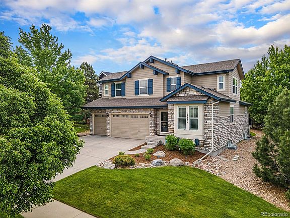 You must see this perfectly updated home for sale, in the desired community of Tallyns Reach. This immaculate home has been well cared for with a tasteful color palette, beautiful hardwood floors, and plantation shutters throughout the entire main level. You will love the spacious and open floorplan between the family room and kitchen. The kitchen has a large center island with slab granite, double ovens, radiant cooktop (with gas range conversion capabilities), beautiful white cabinets with upgraded crown molding, and eat-in casual dining space. The family room features a gas fireplace with updated tile and mantle. A formal dining room, living room, main floor office, ½ bathroom and mud room round out the main floor living space. Upstairs, the primary bedroom features recessed ceilings and a gorgeous five-piece bathroom including double sinks, soaking tub and huge walk-in shower. The primary walk-in closet is a dream size at 12x7! The second bedroom offers its own ¾ ensuite bath and the remaining two large bedrooms share a full bathroom. The finished basement is the perfect place for entertaining! A second family room/media space, custom wet bar that includes both bar and wine fridges, half bathroom and additional space for game tables. There is ample storage in three basement storage areas as well as the 3-car garage. The new trex deck and stamped concrete patio overlooks a well manicured yard and allows for multi-level outdoor enjoyment. The neighborhood offers an abundance of amenities: clubhouse, pool, tennis courts, parks, trails, & a variety of fun community events. So many nearby options for shopping/dining. Easy commute to DTC & DIA!