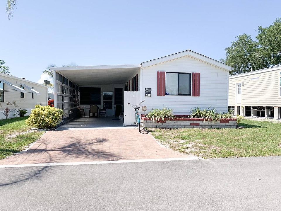 What a deal! This 2 bedroom, 1 and a half bath split bedroom floorplan is move in ready! New roof installed in 2023. Although Hurricane Ian took the carport and shed, you can buy this home as is or seller will continue with plans to build carport and shed for an additional $20,000. Located in a 55 plus active lifestyle community.