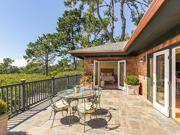 Situated beautifully on quiet Lower Trail in Carmel Woods, this newly renovated move-in ready home affords stunning panoramic ocean views. Featuring a reverse floor plan with three bedrooms, two bathrooms and a two car garage- this charming home has light filled living spaces and outdoor patios ideal for entertaining. The spacious kitchen with expansive views features a breakfast bar that opens to the living/dining room. The sunny ocean view deck sits above the trees with views stretching from Point Lobos to Cypress Point and can be accessed from the informal dining room and upstairs bedrooms. The lower level bedroom has a private patio with a full en suite and walk-in closet. Charming and cozy, this Carmel home is a hidden gem.