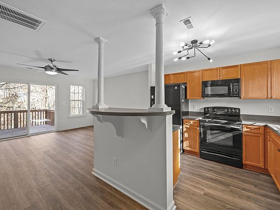 Skip the cookie-cutter apartment and enjoy a spacious, move-in-ready 1BR/1BA end-unit townhome available immediately. New LVP flooring, fresh paint, and a private deck with wooded river views, plus an in-unit washer/dryer included. Greenway access and community amenities near downtown Raleigh and North Hills. UPDATES abound! This move-in-ready end-unit townhome features new LVP flooring throughout the lower-level living space and upstairs bedroom and bathroom, with new carpet on the stairs. The entire unit has been freshly painted and includes new blinds on all windows, along with updated lighting in the bathroom, closet, and stairwell. The open-concept living and kitchen area offers ample space for a dining table, making it ideal for everyday living and entertaining. The spacious bedroom includes a walk-in closet with a stacked washer/dryer and an en suite bathroom featuring a large tub/shower. Step outside to the private deck overlooking a peaceful wooded area and the river. Enjoy easy access to the greenway for walking, biking, and outdoor recreation. The active community offers desirable amenities, including a pool, tennis courts, and more. Centrally located just 15 minutes to downtown Raleigh and North Hills, with easy access to I-440 and less than 30 minutes to RDU.