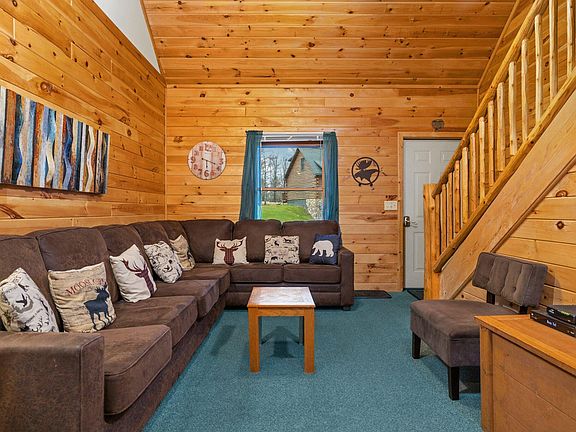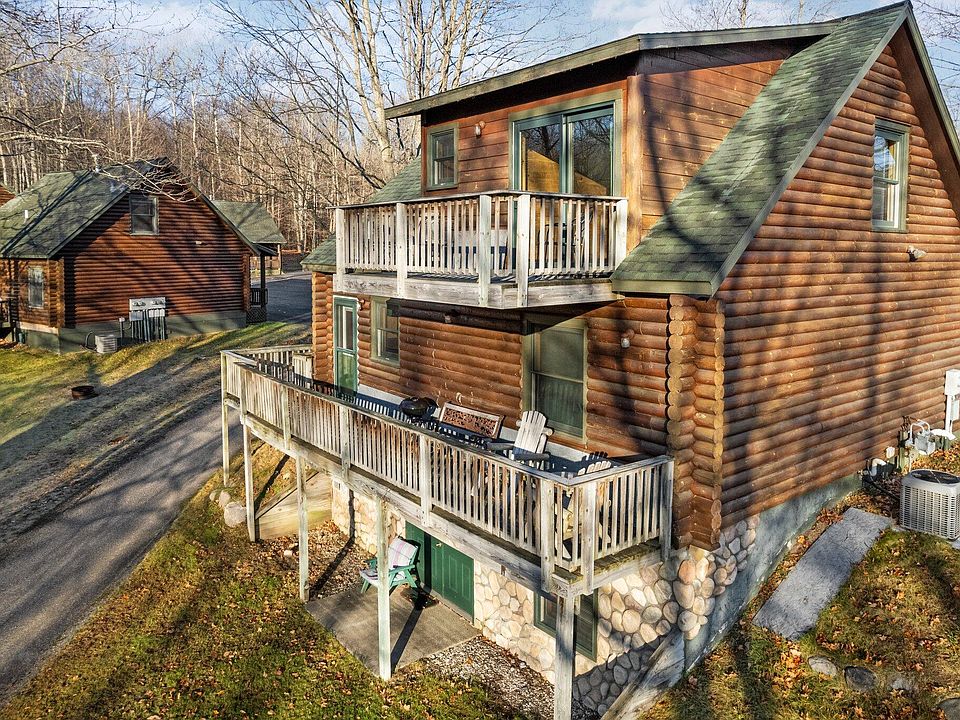 Enjoy the rolling, natural view from this 3-bed/2-bath log cabin comfortably sleeps 12 people for golf or snowmobile get-aways. The fully-finished walk-out lower level gives you the most finished square footage of all the models in Beaver Creek Resort. Sold fully furnished. Use it whenever you choose and rent it through the on-site management. Knotty pine tongue and groove and the decor give this cabin the perfect up-north feel. Thousands of acres of State Land are a stone's throw from the cabin. No need to trailer your snowmobile or side-by-side. Enjoy resort amenities including: a new indoor pool, water slide, fishing pond, campground, fitness center, tennis courts, snowmobile rentals & country store.