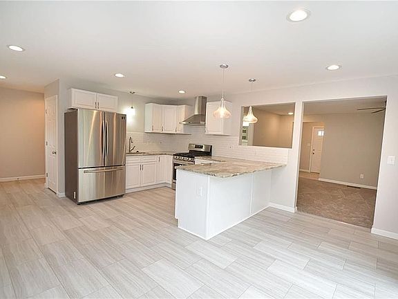 Completely Remodeled Colonial with Penfield schools!! 3 bedrooms, 2 full baths! New kitchen and bathrooms, fresh paint and carpet through out, BRAND NEW furnace and water heater! First floor laundry, quartz counter tops, brand new stainless steel kitchen appliances included! Sliding glass doors off kitchen lead to a newly poured concrete patio! Utilities included.
