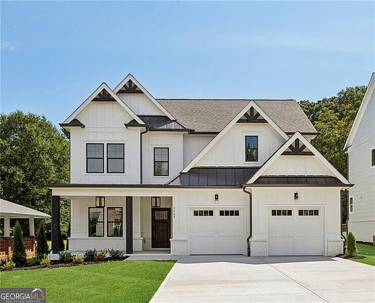 New Construction next to popular Williams Park! So convenient to the Smyrna Market Village and the Battery! This impressive modern farmhouse/craftsman-style home features a gorgeous stained wood front door, a 4-sides brick water table with a board-and-batten front, covered front and rear porches, and a HUGE professionally landscaped yard. The interior offers a dining room with a beamed ceiling, site-finished hardwood floors, an open kitchen with high-end quartz countertops, stainless steel appliances, an enormous island opening to the large family room, and a bedroom/study on the first floor. Upstairs, you'll find a lovely master bedroom and bath, two additional spacious bedrooms, a sizable hall bath, and an enormous loft/media/playroom + bonus room. This impressive home's included upgrades and finishes are just "icing on the cake". This one is a winner for sure!