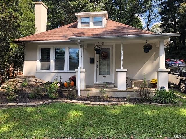 Welcome home to this charming craftsman-style house situated on S. Mountain on a quiet, wooded property within walking distance to nature trails & park. Solid stucco home features 2 bedrms on 1st floor & a 3rd bedrm on 2nd floor, which could also be used as family rm/den. Quaint, arched fireplace in living rm looks like something out of a fairy tale. Open living rm/dining rm w/arched doorway. Beautiful plaster crown molding adds charm to the home. Hardwood floors in living rm, dining rm & 1st floor bedrms. New floors in kitchen & first floor laundry rm, tiled bathrm. Detached 1 car garage. Updated elec. breaker box, architect. shingle roof & energy efficient vinyl windows. Relax on large 28X20 deck & watch deer strolling through wooded area that backs up to tranquil yard. Enjoy peace & quiet of this location while being close to I-78, 309, 145, public transportation, restaurants & Promenade Shops in Center Valley. This is not a drive-by. House is much larger than it appears! 1365 SF