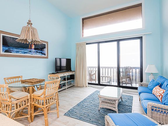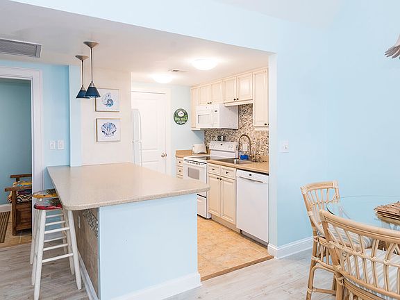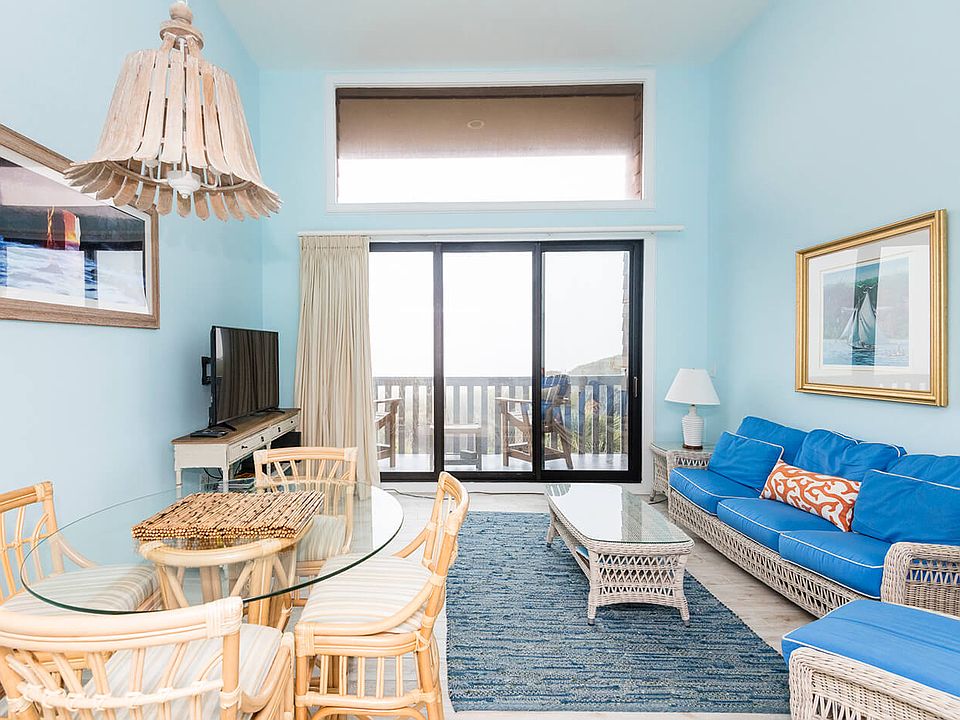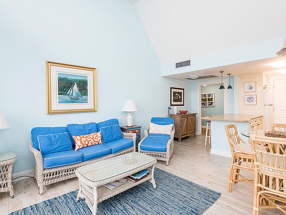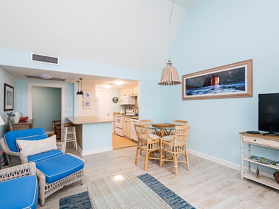 Located in the revitalized West Beach Village, this renovated, oceanfront villa has direct beach access and immediate proximity to The Sandcastle homeowner's pool, Cougar Point Golf course and clubhouse, and much more just steps away. This top floor unit features unimpeded views of the beach and Atlantic and interior detailing such as hardwood floors, ceramic tile, and large windows that frame ocean views. The living room has a vaulted ceiling and sliding glass doors that provide direct access to a private balcony and coveted ocean vistas. The updated kitchen features French country-style cabinetry, tile backsplash, new stainless appliances, and a breakfast bar with counter seating Two large bedrooms each have a private, updated bath. An ideal rental property, this turnkey villa is being offered fully furnished.