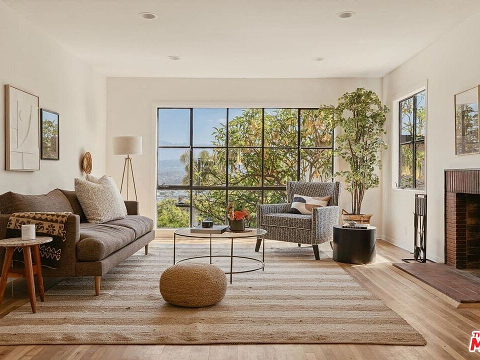 Welcome to this beautifully renovated mid-century retreat in Silverlake! Nestled in the hills at 2467 Silver Ridge Avenue, originally built in 1955, it has been meticulously upgraded to offer modern comfort while maintaining its classic charm. The property sits on a double lot and features a huge yard with multiple seating areas that provide breathtaking views from the Griffith Observatory to the San Gabriel mountains - perfect for soaking in the beauty of Los Angeles. The outdoor space is enhanced by a majestic elm tree and surrounded by mature succulents and cacti. Together, they create a serene and picturesque landscape. Inside, the main level welcomes you with a spacious living area, original brick fireplace and large iron paned windows. There is also a stylish kitchen, newly updated using Zia ceramic tiles. You'll find two inviting bedrooms and a well-appointed bathroom, ideal for creating a serene personal haven. For added flexibility, the property includes a separate guest unit on the bottom floor. It features a bedroom plus a bonus office room, its own kitchen, and bathroom - great for guests, a home office, or potential rental income. The back of the house features a recently built ipe deck where you can spend evenings having dinner and taking in the sunset and the surrounding beauty. The home has undergone recent renovations, including fresh paint, refinished hardwood floors, a new HVAC system, updated electrical, and a new roof. The bathrooms and kitchens have been thoughtfully redesigned with high-quality finishes, ensuring a blend of functionality and style. This property is a perfect blend of modern upgrades and timeless appeal, ready for you to call it home.