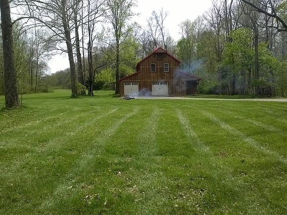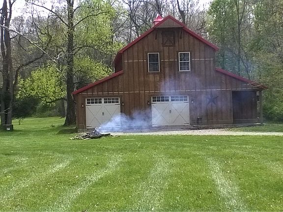 Well-built barn style home on a lovely 9-acre wooded lot. You will enjoy country living at its best in this 3 bed/2 bath home with two attached garages (two single bays) and a detached two car garage. Walk into a nice entryway and head down the hall to the well thought out kitchen with upgraded cabinetry and a lovely view of the wooded lot. Enjoy coffee or a meal on the private covered deck as you soak up the view. To the front of the home you will find a good size family room as well as a private office, full bath and a laundry room. Throughout the upstairs are lovely hardwood floors, a large master bedroom with a barn door and walking in closet, two secondary bedrooms and a full bath.