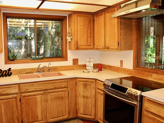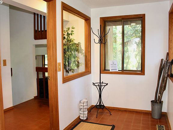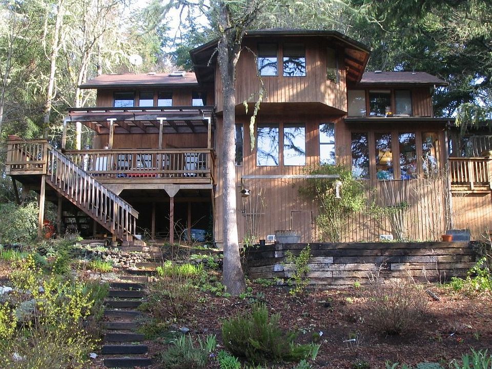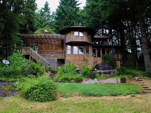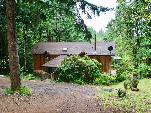 Custom home overlooks beautiful views of garden and property. Unique 1 acre lot adjoins a 120 acre wooded commons area w/trails. Covered deck for outdoor experience. Enclosed solarium with skylights. Fenced garden w/lush soil, fruit trees and several garden beds. Garage/shop has 220 & upstairs hobby room. Maxim central boiler system, forced air & water. 3 miles to FernRidge/Alvadore, come see today!