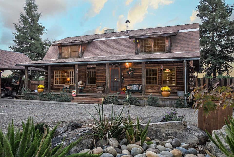 Welcome to your log home retreat!!! Surrounded by 4 acres of Fukumoto Navels this great home features 3 bedrooms and 2.5 baths, a warm and inviting living room with wood beams and cozy wood-burning stove, separate dining area open to kitchen, indoor laundry, central heat and air, oversized 2 car garage with full bath as well as convenient carport! Have your morning coffee on the shady front porch or dinner on the beautiful back deck surrounded by the mature trees and landscaping! Home is completely fenced and has beautiful hardwood flooring, whole house fan, new composition roof installed in 2017. Fukumoto navels are an early variety of oranges, no frost protection needed! Trees are double planted and 18 years old! Enjoy this beautiful home and the income from the grove!!!!!
