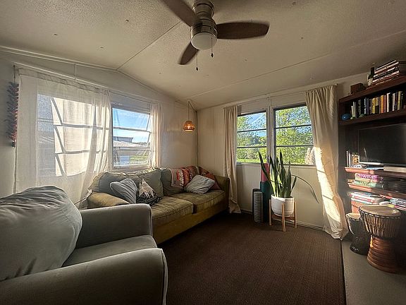 Beautiful country living and an affordable home opportunity in a quiet neighborhood! Space rent $525/month including water. Bright and comfy space with plenty of storage comes with an updated water heater and washer/dryer (2022). The kitchen has a gas stove and comes with a fridge. Trailer interior has been repainted all white inside. The lot has a car port/ shed space, and an extra detached room which has been fully finished, and lots of space for gardening (two raised beds) and enjoying the green scenery! Must pass a background check through property management, serious inquires please message me. Asking $15k OBO as is.