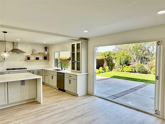 This stunning home in Mission Viejo has undergone a complete renovation. At this price point no other home has the finishings, quality and materials as this one does. As you walk-up to the home, you notice brand new dual pane energy efficient windows that are surrounded with black trim and an off-white painted stucco. Upon Entering the home, new flooring is prominent throughout the entire house. First thing that catches the eye is the kitchen with custom made and painted cabinets. The 9-foot island wrapped with new quartz countertops and the must have waterfall feature. The cabinets all have pullout sliders, with a 36" cooktop, double oven and undercounter microwave space. This space is made for cooking and entertaining. The open floor plan that leads to living room, dining area and back yard make this so inviting. The backyard can be accessed by accordion/bi-folding doors that will open up and create a 8-foot opening to an inviting backyard overlooking the hills of Mission Viejo. Every bathroom has been completely redone with new tile, toilets and vanities. Upstairs all the bedrooms are located and there is an extra room that can be used as a den/office/4th bedroom. The master bedroom is large with a nice fireplace against the wall. There are dual walk-in closets that lead into the master bathroom. Dual vanities, enclosed toilet room, backlight mirrors, large separate bathtub and a walk-in shower with an invisible drain make this a resort like bathroom. A nice safety feature is that the home has been repipped, no need to worry about slab leaks. The community/street is very peaceful and quiet. Again, no other home on the market has the finishes this one does at this price.
