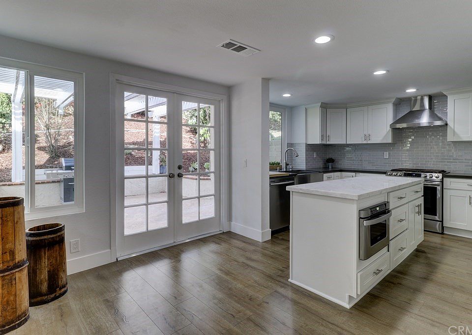Welcome to this spacious and extremely desirable REMODELED Wellington floor plan rarely on the market! It features 5 bedrooms PLUS a large bonus room (could be 6th) a full-size bathroom with stand-up shower on the first floor, formal living, dining and family room, double-sided bar and lots of new windows to bring in the natural light along with skylights and vaulted ceilings. Some of the upgrades include 3 contemporary fireplaces, new laminate flooring throughout entire home, freshly interior & exterior paint, 5" baseboards and more. The Remodel kitchen features new white shaker cabinets, Quartz counters tops, beautiful Arabescato-Venato marble island with built-in microwave, stainless steel appliances, European sink accented with subway tile backsplash. French doors throughout the back of the house lead you to the low maintenance serene backyard. The front yard has SOD landscaping along with new sprinkler system. The second floor has a spacious master bedroom including a cozy retreat area with a beautiful fireplace, newly remodeled bathroom with walk-in closet, tile flooring, new Jacuzzi tub, walk-in shower with 3/4" frameless shower door and his and her vanity. All bathrooms have been remodeled with tile flooring, quartz countertops, white shaker cabinets, new toilets, new lighting fixtures, new Kohler hardware. 5 spacious bedrooms upstairs. The two-car garage has Epoxy flooring a new garage door and opener. Best value per square foot.