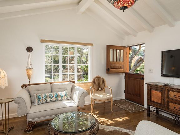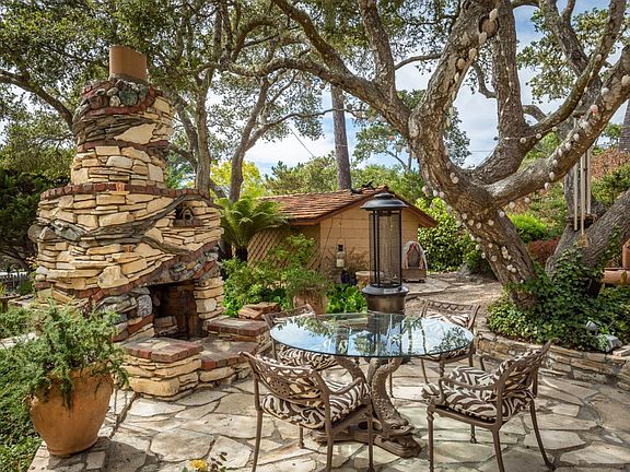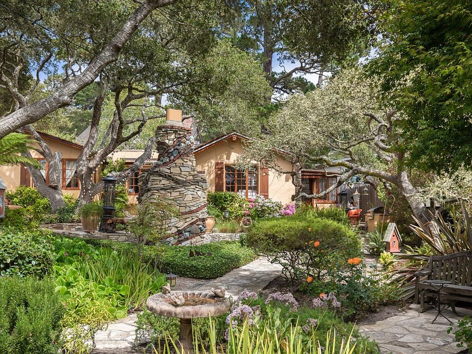 Sea Dreams- A Quintessential Carmel Garden Cottage. Enter through the idyllic front gate where a truly magical property awaits you. Meandering Carmel stone pathways wind through mature gardens and a uniquely whimsical outdoor stone fireplace featured in "Carmel's Fairy Tale Cottages". Savor morning coffee or sunset wine on this captivating stone patio, perfect for al fresco dining. Built in the 1930's, this light filled 2-bedroom 2 bath home sits back on the oversize lot, enhancing your privacy and relaxation. Adjacent to the charming breakfast nook, the tastefully updated kitchen includes a farm sink, marble countertops, Viking stove and oven, Bosch dishwasher and Fisher Paykel refrigerator. New Hickory hardwood flooring in the living room, kitchen and bedrooms, as well as a custom Dutch front door add to the enchanting cottage appeal. A detached one car garage, new wood shake roof and separate laundry room round out this unique opportunity to own a piece of Carmel's history.
