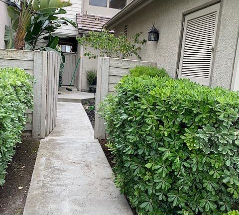 DOUBLE MASTER SUITES in Designer Perfect, highly upgraded home in Beach Close Camden Court! Oversized wrap around private lot with impressive upgraded stone patio & lush, tropical landscaping! Private enclosed front Court Yard & Private enclosed backyard with tranquil views of hillsides & cheery tropical plantings throughout this little village by the sea! Designer touches everywhere! A Chef's Dream, the kitchen features rich granite counters, warm wood cabinets & easy care, rich Sautillo-tile floors. The double Master suites feature gleaming wood laminate floors in this sunlit home! Master Bath features Stone floors & designer stone tile accented shower/tub enclosure! Great room features crackling fireplace & forever garden views w/ adjoining open-concept sunlit breakfast room! Fabulous finished garage with Office Workstation. Internet ready! A Rare Find, Hesitate & you'll miss out! Owner pays for trash service. Tenant responsible for gas, electric & water. Must have a minimum credit score of 600.