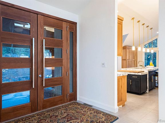 Thoughtfully situated on one of Genesee's prime view lots this move-in ready, completely remodeled home is a rare find in this low inventory market. Mt. Evans is the crown jewel of the neighborhood and the architectural design and masterful window placement of this home highlight the snow cap views. Enjoy a relaxing evening by the gas fire pit or al fresco dining on one of the three brand new concrete patios with panoramic views. The warm contemporary style is full of designer touches and quality finishes. The completely refurbished kitchen features quarter sawn white oak cabinetry with soft close doors and drawers, on trend brass hardware, a huge center island with a thick marble slab, quality stainless appliances and a bar with a wine cooler and beverage cooler. White oak hardwood floors with a clear natural finish throughout the home compliment the all new staircases and cutting edge railings. The floor plan offers great space for gatherings with family and friends and the bedrooms are all private retreats. Today's world demands space to work and school at home and this home offers two home offices and a large unfinished space that is ideal for storage or future expansion to meet any necessary needs. Other highlights include; three water features, new landscaping and concrete patios, gas fire pit, new composite deck, hot tub ready space, all new kitchen and bathrooms, extensive slab marble, Restoration Hardware light fixtures, sleek window coverings, central air, new furnace, new hot water heater, double offices (one could be a yoga or work-out room), oversized three car garage and a long lasting stone coated steel roof.