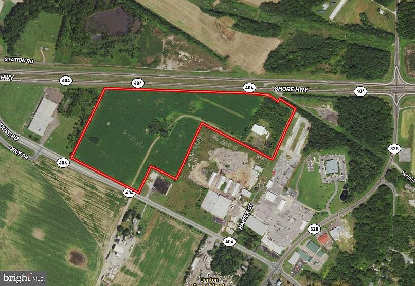 +/- 36.32 acres including +/- 30 acres of tillable farmland. Remaining acreage is a combination of wooded land and land used for warehouse building. Land is zoned light industrial with significant road frontage on 404 and Meeting House Road in Denton, MD. 10,000 Sqft warehouse building was previously used by a custom boat builder.
