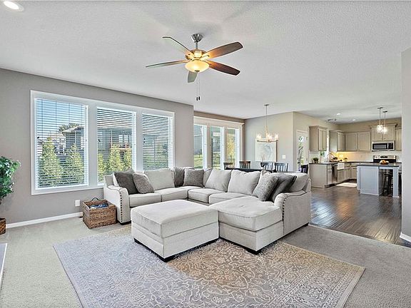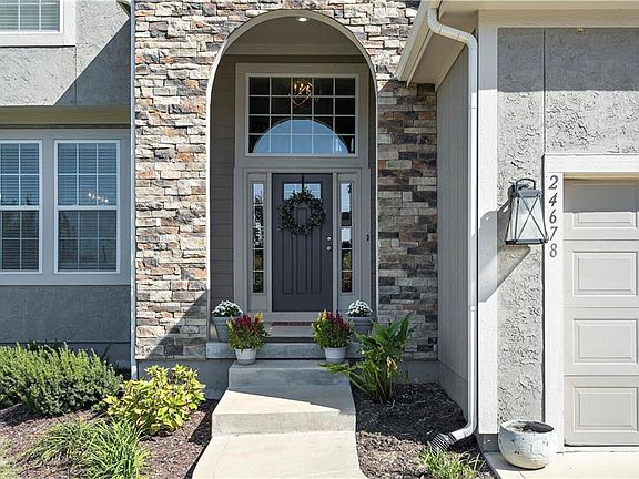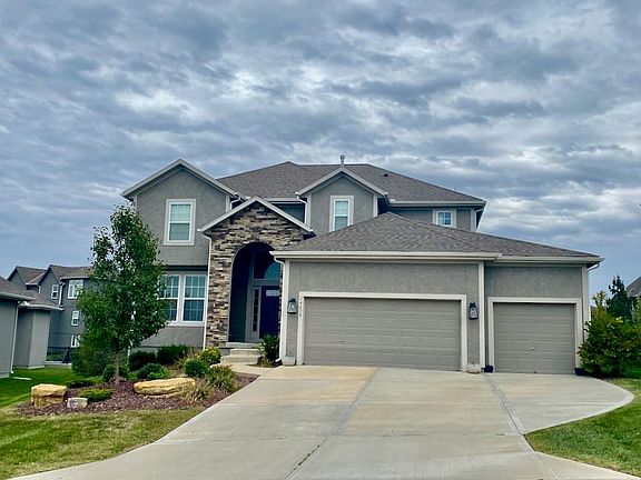 Welcome to the Hills of Forest View! This former model is move-in ready! Offering 5 bedrooms, 4 full baths, with room to room! Upgrades throughout include; wood floors, quartz countertops, a farm sink, a large island, a walk-in pantry, custom cabinetry, stainless steel appliances, and fridge stays! First-floor office and/or guest room with a full bathroom, a built-in boot bench off of the 3-car garage, plentiful closets, blinds, and wine bar off the great room, and neutral decor throughout. Open plan featuring a great room, formal dining or living rooms with wine bar, breakfast room, 2-story entry, iron spindles, decorator stair carpeting, and built-ins. Oversized primary suite and spa-like primary bath with separate tub & and walk-in shower, double vanities, and a large walk-in closet. The laundry is conveniently located on the bedroom level. 3 generously sized secondary bedrooms upstairs and 2 full baths. The basement is huge and ready for future finish complete with 5th bathroom stub. Relax on the covered patio overlooking the fenced yard complete with a sprinkler system. Located just steps from the new Cedar Niles park and trail system. Community amenities include; beautiful topography, a waterfall, tons of trees, plush landscaping, a zero-entry swimming pool with a splash pad, pickle-ball courts, basketball, a playground, and shelters that can be reserved for those special occasions. All 3 schools are within walking distance including Forest View Elementary, MissionTrail Middle, and Olathe West High School.