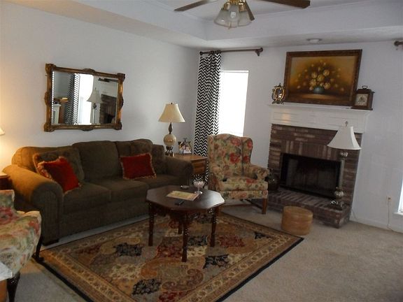 Lovely Patio home that is well maintained and low maintenance. Enter into this 2 bedroom 2 full bath with small Foyer leading to spacious family room with trey ceiling, brick fireplace & ceiling fan..leading into a formal dining area with French doors to side patio. The kitchen is equipped with updated stove, dishwasher, etc. Separate laundry room also. Both bedrooms are spacious and nice closets. Master suite has walk-in closet, and French doors to the wonderful Private deck on back with privacy fenced backyard. Fresh paint inside and out. Come view this lovely home, and I'm sure you would want to call it HOME!!!
