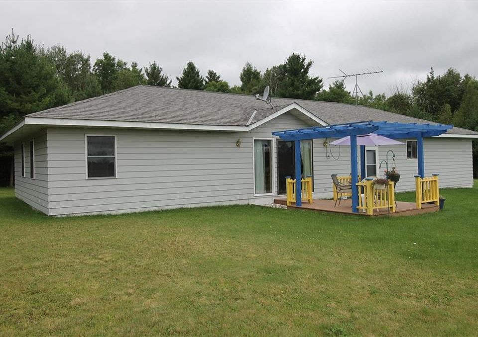 Easy Country Living ! Enter through the tree covered drive, which takes you back into a private clearing where you can set on the back deck and watch the wildlife and listen to the loons on the near by lake. This quality 2 bedroom home is custom built with oak cabinets, Murphy bed, office deck and bookshelf all made in the large heated workshop/garage. There is also extra storage space in the 26x24 pole shed. Great Hunting Area! Includes A Home Warranty