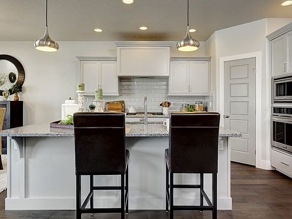 The "Syringa 4-Car" by Boise Hunter Homes. Awesome main level bedroom & full bath for guests. 2-story family room w/ soaring ceilings makes the space feel even larger than it already is, 9' ceilings on the eating area & kitchen make the space feel separate w/o walls. Upstairs, the Master BR w/ step ceilings is a true retreat. Separate vanities & walk-in shower. Utility room is upstairs where most of the bedrooms are. Home ready now. Photos similar. This home has Premier Series Finishes. BTVAI.