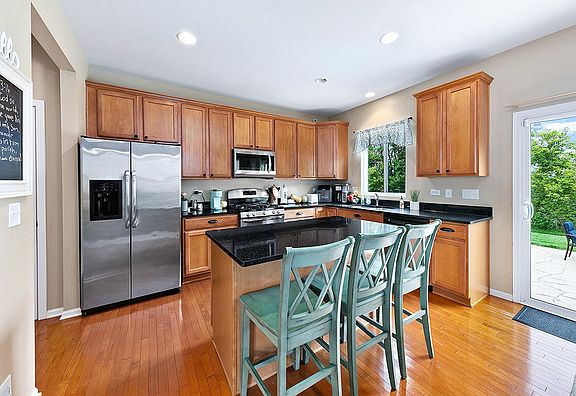 Brand new roof! Welcome to this meticulously maintained 4 bed 2.1 bath home! Features include hardwood floors throughout the main level, Quartz countertops, stainless steel appliances, fully finished basement! Located on a premium lot with beautiful mature trees and a large stamped concrete patio, backing to an open field and across from a pond. Located right by a bike path and just minutes from Blackberry Oaks golf course!