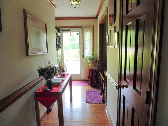 Substantial and beautiful brick Ranch on 1 acre on Rt. 33. Attached 1-car and Det. 1-car garages. Shed with pole barn. Concrete and brick ramp to Family Room (brick FP). Gutters, Dual Central A/H, 3BR/2.5BA, 2080sf. Formal LR, DR, eat-in Kitchen bar, beautiful Hardwood floors!! Both baths have double vanities, Master Bath is large! Laundry Rm with Garage access, crown and chair. Some carpet needs to be stretched back. Cable/Satellite - your choice! Lovely Home!