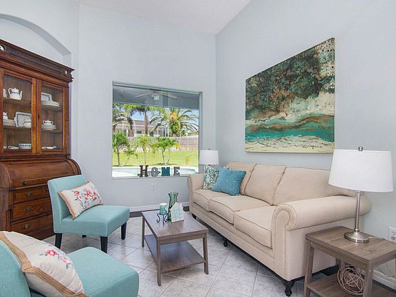 Welcome Home to this beautiful, coastal, immaculate home located off beautiful South Tropical Trail. 2019 Roof!!! Featuring 5 bedrooms, 3 bathrooms, 3 car garage and a LOFT. Master bedroom along w/3 bedrooms and 3 bathrooms located on 1st floor & large loft, & the 5th bedroom upstairs. Home has enormous kitchen, breakfast bar, island, pull out drawers & breakfast nook. Skip trowel ceilings and newer carpeting & interior paint. Home has upgraded insulation, pull down stairs for attic access andupgraded garage power amps. Cool off from the summer heat in your large, salt water pool with patio. Lake front community with low HOA dues. This beauty of a neighborhood has a community dock, fishing pier and property is located midway to Pineda Causeway and SR520.. Come and see this gem.