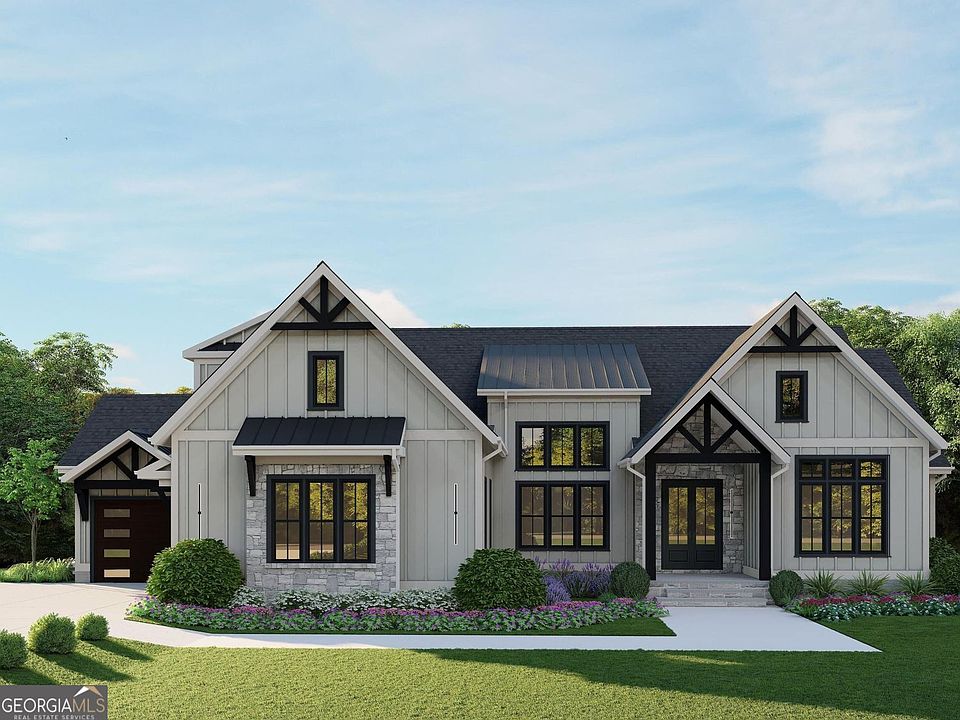 PGB HOMES Introducing 2468 Rockbridge Road NW, Modern Farmhouse Ranch Style Lakeside Floor plan, full UNFINISHED Basement, 5 Bedroom, 5.5 baths, an exquisite masterpiece nestled in HAMPTON ESTATES new subdivision, this luxurious 7809 square foot home is a masterpiece offering an open floor plan that seamlessly blends elegance and functionality. As you step inside, prepare to be enchanted by the captivating design elements. As you enter, you'll be greeted by an open floor plan two-story foyer and high ceiling family room. The open concept creates a seamless flow from the dining room to the family room and into the gourmet kitchen, making it the perfect home for entertaining guests or enjoying quality family time. The grand owner's suite is located on the main floor boasting a generous walk-in closet and luxurious en-suite bathroom. Along with 3 bedrooms on the main level. You'll also discover that there one additional bedroom and bonus on the second floor as well. The Lakeside Floor Plan isn't just a home it's a lifestyle fit for generational living. Take a stroll along the community's nature trail, complete with welcoming benches for moments of relaxation and reflection. Moreover, you'll have the convenience of being close to local shops, restaurants, close proximity access to the airport, and much more. Don't let this remarkable opportunity pass you by. Secure your ownership of this luxurious property today and be a part of something truly extraordinary! Your dream home is soon to be a reality. ** EXTERIOR PHOTOS ARE RENDERING / INTERIOR STOCKED TO SHOW FINISH QUALITY ONLY.