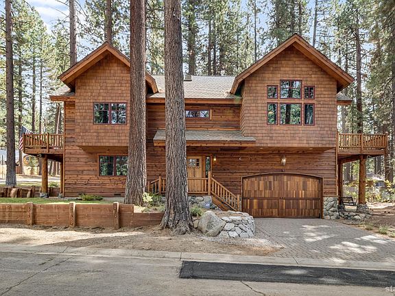 Welcome to 2468 Rose Avenue, a beautifully maintained and custom-built South Lake Tahoe home offered together with the adjoining vacant lot at 1222 Lodi Avenue creating a rare opportunity for space, privacy, and future potential. This inviting residence features 3 bedrooms plus an office, 2.5 bathrooms, and an oversized two-car garage with a custom mahogany door. The exterior blends timeless Tahoe style with cedar siding and natural stone accents. Inside the home, you'll find custom cabinetry, log accents and the tasteful use of wood throughout. The spacious living area features a stunning gas fireplace with a stacked stone surround and a log mantle. Directly off the living and dining area is a large deck perfect for enjoying summer evenings. The primary suite with it's private patio captures breathtaking views of Mount Tallac, offering a daily reminder of Tahoe's beauty. The primary suite also features a large closet and a comfortable ensuite bathroom.There is an office on the living room level with a pull down murphy bed that is also a built in desk. This turnkey home comes furnished, including select pieces from Pottery Barn, making it easy to settle in right away. With a 50-year roof providing lasting peace of mind, new carpeting in the bedrooms, thoughtful craftsmanship throughout, and the added value of the vacant lot, this property is a rare find in the heart of South Lake Tahoe. The garage has plenty of room for storage and hot water to keep your car and Tahoe toys clean. Price posted is for the lot and house, seller wants to sell both parcels together as a package. Seller is a licensed CA agent (not active)