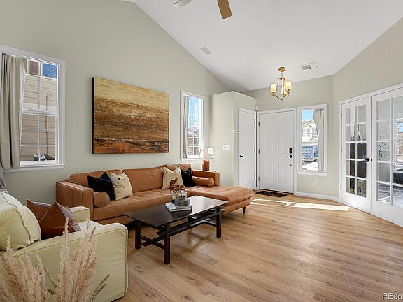 Come in, kick off your shoes and relax; you've found your new home! This 3 bedroom, 2 bathroom homes in Sterling Hills offers lots of light with newer flooring installed in 2020 (Front bedroom flooring installed in 2022), newer bathroom vanities and toilets installed in 2020 along with light fixtures include 8 ceiling light fixtures, 2 bathroom sconces, (2 new lighted smart ceiling fans will be included for you to install if you choose), kitchen appliances and washer and dryer all purchased in 2020. Our beautiful summer nights are calling you out to the deck to wind down while you enjoy your favorite beverage and the beautiful blooming trees. This home is located near parks including Great Plains Park, Sterling Hills Park, Aurora's new Central Recreation center with indoor pool, fitness classes, and weight rooms, shopping, dining and public transportation. Centrally located so you can get to Cherry Creek State Park (11 mins), Town Center at Aurora (12 mins), BAF (8 mins), Downtown Denver and DIA (18-30 mins). Schedule your private showing today!