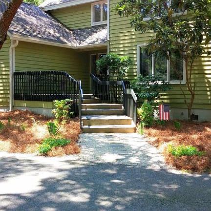 Wonderful family vacation home! Over 3,000 sq ft, with multiple living areas so even large families have space to spread out. Large great room with vaulted ceiling & stone fireplace, dining room with a small sitting room/ bar area between it and the kitchen, large fully equipped kitchen that opens to a family room, sunroom, large screened porch, small transition area between great room & sunroom which could be an office or study, private en suite bedroom over the garage and en suite guest room & loft on the second floor, plus plenty of storage. The kitchen affords granite counters, large center island with seating, beautiful cabinetry, ceramic tile flooring and vaulted ceiling. (continued)