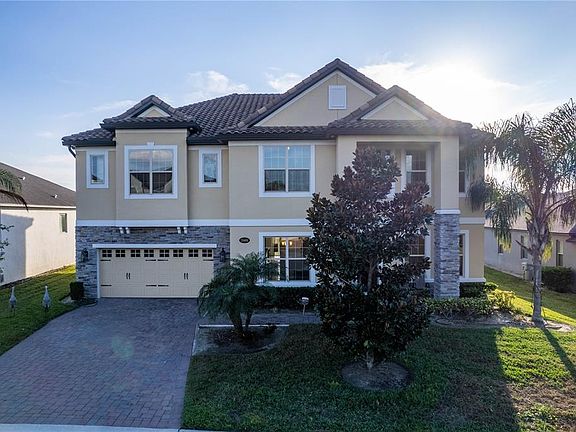 This stunning 5-bedroom, 4.5-bath residence in the gated community of Vistas at Waters Edge offers exceptional space, comfort, and style. Built in 2020 and beautifully maintained, this home features 4,850 sq ft of living living area and stands as one of the largest homes in the neighborhood, offering a layout designed for both everyday living and memorable entertaining. The first floor showcases sleek epoxy flooring that creates a modern, seamless flow through the main living spaces, while the spacious kitchen opens effortlessly into the family room, making it ideal for gatherings. Upstairs, you’ll find a true retreat with a large common room complete with a built-in sink and counter, perfect for a coffee bar, snack area, homework lounge, or secondary living space. The dedicated theater-style room provides an impressive setting for movie nights, gaming, or a private media lounge. The luxurious primary suite includes a generous walk-in closet and an elegant master bathroom designed for comfort and privacy. Additional bedrooms feature reach-in closets and comfortable carpeting for a warm, welcoming feel. With a 5-year-old roof, 5-year-old HVAC system, dedicated laundry room, and low-maintenance finishes throughout, this home offers peace of mind and convenience. Located in a secure, well-kept gated community with an HOA of just $125/month, the neighborhood is minutes from Lake Apopka, parks, shopping, dining, and major roadways. This is an exceptional opportunity to own a move-in-ready home with standout features in one of Apopka’s most desirable communities.