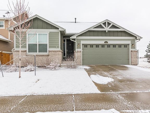 Don't miss this BEAUTIFUL south facing RANCH, located in the Sorrel Ranch neighborhood & Cherry Creek School District! You'll fall in love with the 9' ceilings, hardwood floors, & open concept. The kitchen features a large granite island, stainless steel appliances, 42'' cabinets, & pantry. Warm up next to the fireplace in the great room that also features vaulted ceiling, ceiling fan, & pre-wired for surround sound. Step out onto the Trex deck to soak up the sun & enjoy the open space/greenbelt. Relax in your master suite with features like vaulted ceiling, ceiling fan, 5-Piece bath, & walk-in closet. Guest bedrooms and bath are at the other end of the home allowing for privacy. Main floor laundry includes washer & dryer. The huge full size unfinished walk-out basement is pre-plumbed & waiting for your personal touch, or use as-is for storage. GREAT location near Southlands Mall for your shopping & dining needs, Aurora Reservoir, E-470, DEN International Airport, & Buckley AFB.