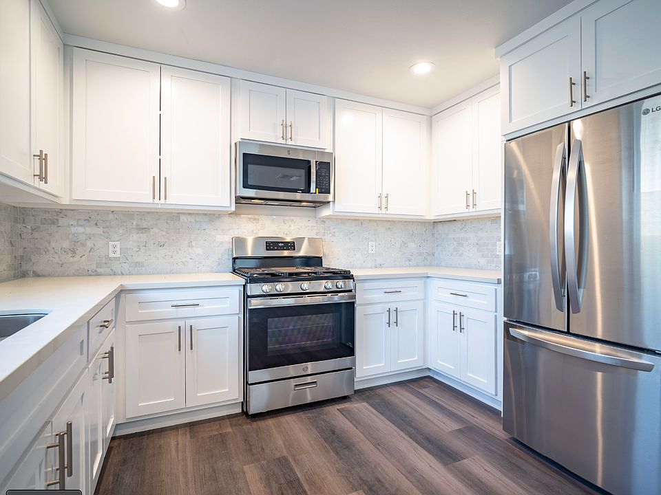 High-end stainless steel appliancesPrivate garage parkingTankless water heaterLaminate wood floors