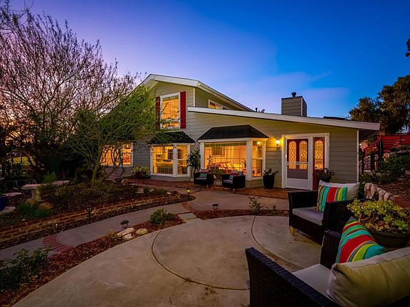 Discover a property where privacy, security, and nature come together in perfect harmony. This fully gated Fallbrook home sits on a spacious lot that has been completely landscaped and hardscaped, creating a resort-like setting that’s as beautiful as it is functional. Every inch of the grounds has been meticulously cared for, offering lush greenery, elegant stonework, and inviting spaces designed for gatherings and relaxation. Step inside to an open living area with incredible views of the lush landscape out every window, and that flows effortlessly into a naturally lit kitchen ready for everyday meals or hosting friends. The bedrooms are comfortably sized, and the huge primary suite includes a loft that’s ideal for an office, studio, or lounge. For even more flexibility, part of the garage has been converted into a bonus room including a sink, cabinets, counters and a built-in fridge, adding endless possibilities—whether you need guest accommodations, rental income, or a private workspace. Outside, the property truly shines. Expansive decks provide the perfect backdrop for entertaining or dining al fresco. A gated entrance and fully fenced perimeter wall add an extra layer of security, and the panoramic views of Fallbrook’s mountains and surrounding nature make every moment outdoors unforgettable. There’s even a charming treehouse with a sundeck that adds personality and fun to the space; a built-in dog area; skylights throughout the home; and a fully functioning eco-shower connected to the bonus room outside and that waters the surrounding rose vines and plants. All of this comes with the convenience of being just minutes from central Fallbrook, shopping, dining, schools, and commuter routes. It’s a rare combination of seclusion, convenience, and entertainment-ready design that is crafted for those who want the best of both worlds.