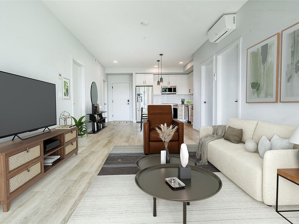 Welcome home to this modern 2-bed, 2-bath condo featuring a stunning wrap-around balcony and easy highway access to downtown! This elevated, south-east facing 3rd floor corner unit offers exceptional privacy, abundant natural light, and impressive views. Enjoy stainless steel appliances, soft-close cabinetry, quartz countertops, luxury wide-plank flooring, and plush carpet in the bedrooms. A heat pump provides efficient heating and cooling for year-round comfort. In-suite laundry and a dedicated storage room complete the space. This unit comes with one secure parking stall and an adjacent storage space. The building offers top-tier amenities including a rooftop deck, gym, dog run, community garden, recreation room, guest suites, EV charging stations, and visitor parking. Ideally located near catchment schools, shopping, daily conveniences, and bus stops for easy travel around Langford and downtown Victoria. Book your showing today