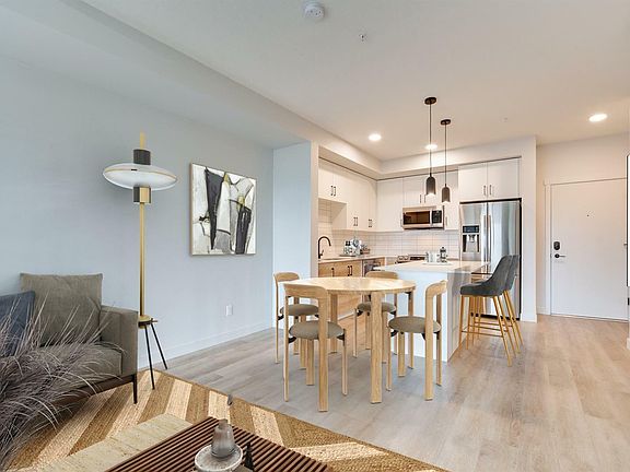 Welcome to the SKY GATE! This south facing 1 bed 1 bath condo has beautiful views of the Olympic Mt. The building is considered one of the most environmentally advanced multifamily buildings on Vancouver Island. Constructed to be Built Green & to Energy Step Code 4 of the BC Building Code. With triple pane windows for sound proofing and a heat pump providing efficient way of heating & cooling. Quality built with features like luxury vinyl plank flooring, quartz counters, LED lighting, soft close cabinetry, Leak DTec System which detects, alerts, & shuts off water to prevent potential flooding. Enjoy building amenities that include roof-top deck, fitness centre, community gardens, community lounge, EV charging stations, bike storage, dog run, and so much more. Walking distance to shops, restaurants, Costco and many other amenities. Dogs, cats & rentals are permitted.. First time home buyer & investor alert. Vacant and easy to show!