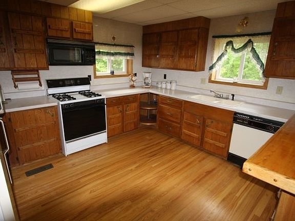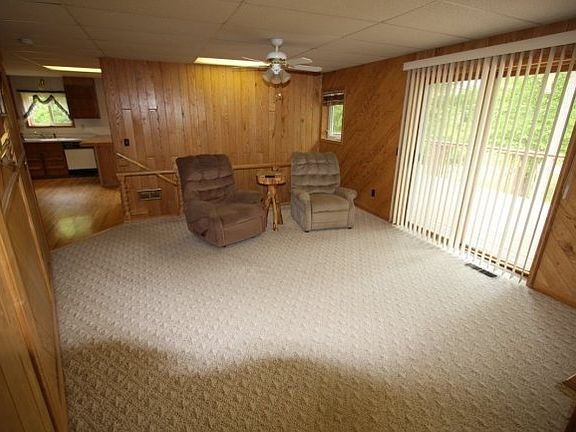 This quality constructed stick built home features lower level family room with fieldstone wood burning fireplace, and 77 acres of wooded privacy only 4 miles from town, tongue and groove hardwood paneling, oak 6 panel doors, low maintenance vinyl siding, hardwood flooring, wood heated sauna, hot tub, and central air. The acreage features mature and adolescent growth oak, mixed tree cover, open wildlife areas, elevated deer stands, numerous trails and apple orchard.
