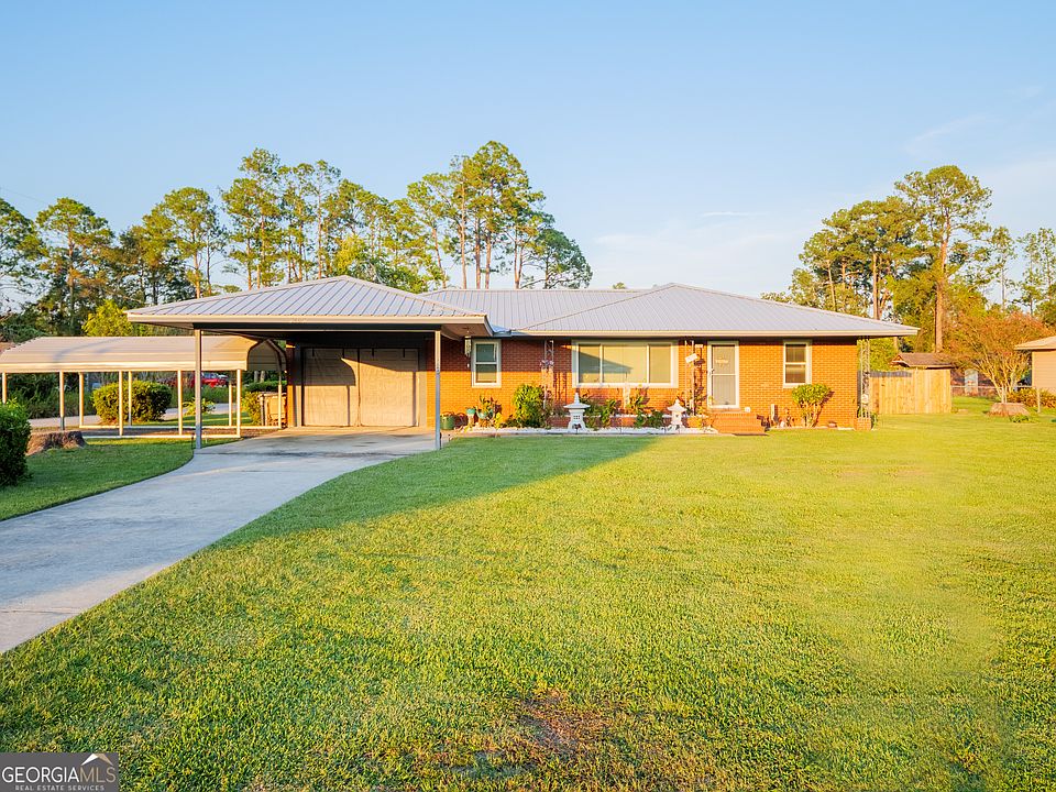 Renovated home with mother-in-law suite, 20x30 wired workshop with 10 foot overhang on slab, an additional 10x10 shed, new pergola covered patio, privacy fenced yard, new efficient windows throughout, and more. New metal roof (2 yrs old), new tile throughout (no carpet), new privacy weather-treated wood fence on almost 1/2 an acre. Mother-in-law suite comes complete with full kitchen, bathroom, walk in closet, and oversized bedroom big enough for extra seating such as a sofa, as well as extra parking near rear entrance and its own a/c. Main home features single car garage, covered driveway and extra covered vehicle parking spot. Inside enjoy quartz counters in your updated kitchen with stainless steel appliances, including a custom mobile island that can moved to your liking. Kitchen opens to spacious dining room and extended living room with natural light throughout. Newer hot water heater (2 yrs), 3 bedrooms and 1.5 bathrooms- full bathroom recently updated to walk-in shower with beautiful subway tile. Laundry room is enclosed and located centrally between main home and guest home. Attached sun-room separates main home and guest home with painted brick and oversized windows. Back yard is fully fenced with double-wide gate and hosts your new treated patio deck with pergola for shade as well as your 30x20 wired metal shop with roll-up door (sits on slab). NO TREES- all trees have been removed from this lot!. Conveniently located just south of Valdosta near Lake Park. Termite bonded and ready to transfer- This home has been well cared for and won't last long. Call your favorite Realtor to tour today!