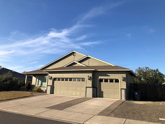 This home is located in New Haven Estates Subdivision of Central Point. Excellent location, great schools! Plenty of room for your Toys 9 foot ceilings 3 CAR GARAGE!! RV parking . Jewett Elementary School Scenic Middle School Crater High School 2469 Rabun Way, Central Point, 3 bedroom, 2 bath, Large separate family room separate living room and fireplace 3 CAR GARAGE!! RV parking . This nice home has 9 foot ceilings! The living room is separate w/vaulted ceilings w/ceiling fan and a fireplace. The kitchen featuring a center island that is great for entertaining, with a very large eat in kitchen. Off the kitchen is a large tile family room with doors that leads to the patio. The master suite is bright and spacious with coffered ceilings and walk in closet, It has It's own sliding glass door to the back yard patio.. The master bathroom has a double vanity and a 5 foot walk in shower. The other 2 bedrooms are of nice size. Mature landscaping with in ground automatic watering system and a fully fenced yard This is a very nice home in a great neighborhood of central point and great schools and near shopping. 2068 square feet Pet are OK with references Call for more details and a showing. 1 year lease, Tenant pays all utilities, small dog with references,