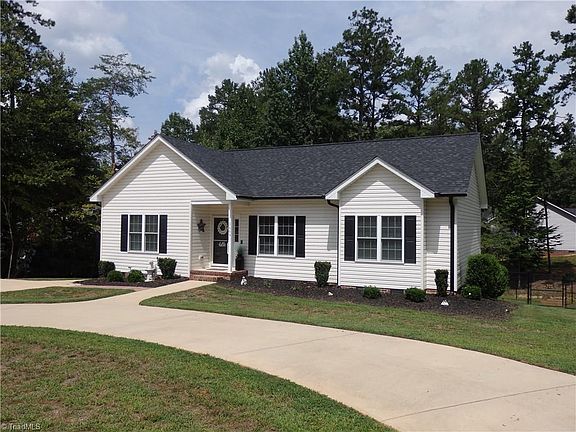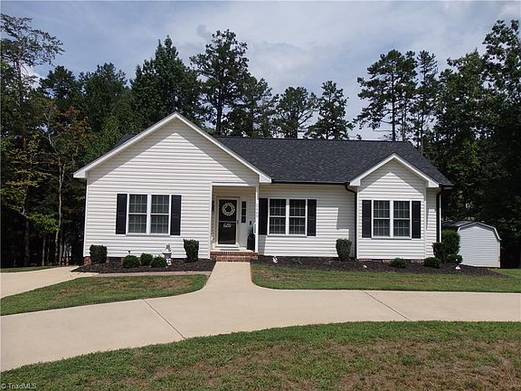** Multiple Offers**Move in ready, 3 bed, 2 bath split floorplan home w/ fenced in back yard & outbuilding. Kitchen w/ eat at kitchen island & quartz countertops. Lights underneath top kitchen cabinets. Laundry room, pantry with outside entrance to the back deck with TV and retractable awning. Primary with walk in closet. Primary bath has double vanity and walk in shower. Both baths have granite countertops. Circle, concrete drive and large parking area. Easy access to major highways. Refrigerator, TV on Deck and TV in 3rd bedroom remain.