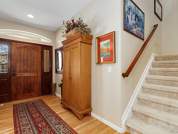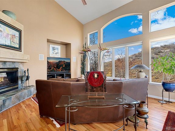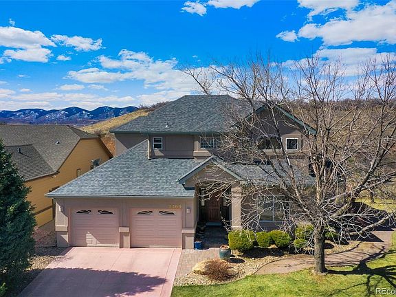 Your dream home awaits in Lakewood gem on a special, private lot surrounded by incredible natural beauty as your backdrop! This exquisite home sits on a corner lot at the end of a cul-de-sac so it’s peaceful and quiet. Step inside the gorgeous new wood front door and immediately be wowed by the soaring vaulted ceilings, stunning hardwood floors, breathtaking open space views, & an abundance of natural sunlight streaming in through the many windows. Easily entertain from the open concept main floor that is anchored by a cozy corner fireplace and the endless serene open space views! The kitchen delights with an extensive eat-in breakfast bar, black stainless GE appliances, pretty white cabinetry, & you’ll even enjoy doing dishes in the corner sink with two windows overlooking the views! 2 sliding doors open entirely to the upper deck creating a seamless connecting between the indoor and outdoor living space. More formal gatherings can take place in the unique circular dining room with a wall of windows. Main level bedroom with attached 3/4 bath had the doors removed to make an open office, but an easy fix to put the doors back. Journey upstairs to the primary retreat where a spacious open loft space awaits at the top of the landing with dual doors opening upon the bedroom with a bonus sitting area where you can enjoy curling up with a good book & take in the peaceful surroundings! A rustic custom sliding barn door leads to the 5-piece bath with relaxing jetted tub, bench seat shower, and his-and-hers walk-in closets. fully finished walk-out basement with an extensive family room is prefect for gatherings, and the sliding door leads to the new backyard paver patio with new overhead custom pergola to enjoy all summer long. Invisible dog fence for pets safety. Enjoy having Fox Hollow Golf Club, Homestead Golf Club & Bear Creek S.P. to relish in Colorado’s great outdoors right at your fingertips. This move-in-ready home is a rare-to-find treasure you don’t want to miss!