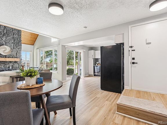Welcome home to this beautifully remodeled townhome centrally located with quick access to 225! When you walk in you are greeted with luxury vinyl plank flooring, an open floor plan with high ceilings, large windows with an abundance of natural light, new fixtures, and a prestigious tall fireplace with a stunning mantle. The living room flows easily into the large kitchen which boasts slab counters and newly finished cabinets. Enjoy your morning coffee on your private covered back patio or perhaps even a swim in the community pool. Both full bathrooms feature matching slab counters and all new fixtures. This is one of the only units that features a TRUE 2nd bedroom as most units have the 2nd bedroom as a loft that is open on one wall. More upgrades include all new flooring, paint, backsplash, washer, dryer, fixtures, finishes, bathroom mirrors, toilets, hardware, and more! Conveniently located bordering Golf Club at Heather Ridge and just 2 blocks from 225 and Iliff, you are sure to be to your destination in record time!