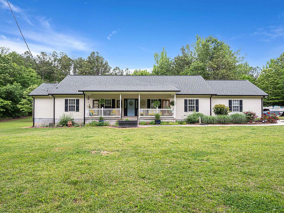Welcome to your own piece of paradise! Nestled on 20 acres, this beautifully maintained 5-bedroom, 3-bathroom home offers serene living at its finest. Step inside to discover hardwood and tile flooring throughout the main living areas, while laminate hardwood flooring graces the bedrooms. With parking on the main level and a spacious split bedroom design, convenience meets comfort seamlessly. Enjoy the tranquility of nature from your covered porch as you watch deer and turkey roam in your yard. Recent upgrades include a freshly redone back deck and stylish black gutters. Escape the hustle and bustle - this home is your private sanctuary.