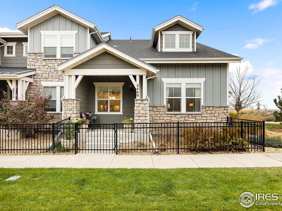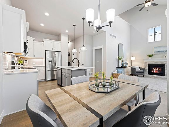 Seeking low-maintenance living with stunning views of Boyd Lake, Longs Peak, and the breathtaking Front Range? This luxury end-unit Landmark townhome offers it all! Set in a prime location with stunning upgrades throughout, the home is filled with natural light that highlights high vaulted ceilings in the great room and a welcoming gas fireplace. The open-concept design flows seamlessly into a generous dining area and a beautifully crafted kitchen, complete with quartz countertops, a large island with seating, elegant white shaker cabinets, and under-cabinet lighting.On the main floor, discover a spacious primary suite complete with a full bath and walk-in closet, a convenient powder room, a laundry room, and access to the oversized 2-car garage. Upstairs, enjoy additional living space with a versatile loft perfect for a home office or entertainment area, beautiful views, two generously sized bedrooms, and a full bath. The fully finished basement enhances your options with a large family room, a fourth bedroom, and an additional full bath for added privacy. Outside, a gated front patio with breathtaking views provides the perfect spot for enjoying Colorado evenings.This vibrant community, conveniently located just minutes from Centerra, shopping, medical facilities, and I-25/Hwy 34, offers a stress-free living experience. The community includes high-speed internet, basic cable, trash and recycling, landscaping, snow removal, and access to the High Plains Environmental Center, pool, lake, and scenic trails. You'll find everything you need nearby for easy living. (Note: The community pool is temporarily closed; the reopening date has not been annoynced yet.)