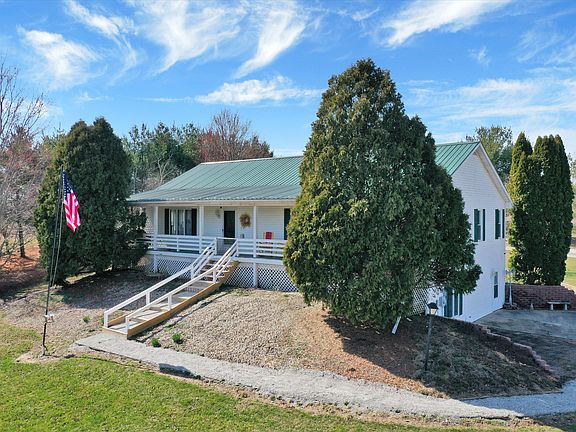 Beautiful, peaceful property boasts spacious home with an incredible front porch! The oversized great room and generous kitchen are wonderful space to entertain or spend time with family! Huge basement with a secondary kitchen and half bath. The en suite primary bedroom is on the main floor thoughtfully situated away from the main living areas! Home is currently a 3 bedroom, could easily be 4 bedrooms! A barn is ready for your choice of animals....horses? goats? cattle? Choice is yours! Detached garage has room for all of your projects! Schedule your tour today!