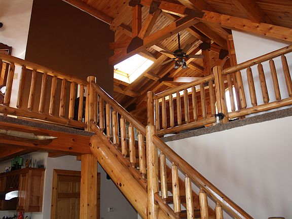 TIMBER FRAME LOG HOME Awesome knotty pine cathedral ceilings w/skylights & exposed beams. GR opens to kitchen w/black-galaxy granite counter-tops & features floor/ceiling stone fireplace! Grand staircase takes you to the huge master suite showcasing cathedral ceilings, 2 sided stone fireplace, magnificent views & private master bath. (REMODEL 2017) Loft/den overlooks GR. M/F laundry/mud room off oversized 24x23 garage. Finished basement w/built-in wet bar, radiant heated floors, bathroom, possible 4th & 5th BR. 30' x 40' outbuilding w/concrete floor. 2 level deck. Poss in-law quarters/guest rm
